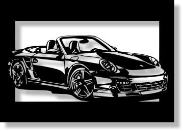 ポルシェ(Porsche) 911ターボ カブリオレの切り絵 【A4サイズ】[C4-012]